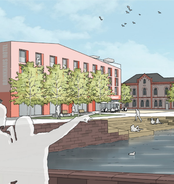 Dies führt im Ergebnis zu einem attraktiven mischgenutzten Quartier, in dem sich die Historie des Ortes widerspiegelt, das auf vielfältige Weise mit den umgebenden Grünstrukturen und Wasserbereichen verknüpft ist und für alle Verkehrsarten gut an die Innenstadt angebunden ist. Das Brinkhaus-Quartier als lebendiger Stadtbaustein Warendorfs!
