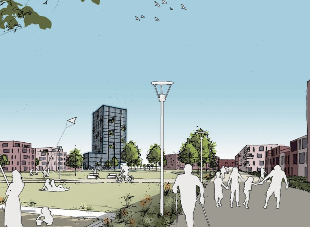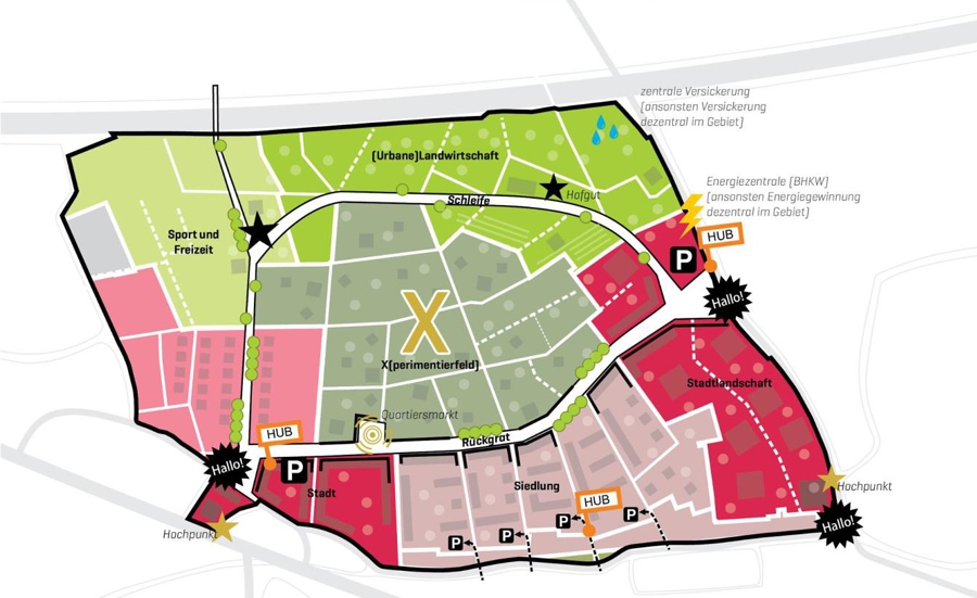 Das Büro MESS wurde beauftragt, ein flexibles und robustes Entwicklungskonzept zu erstellen, das eine schrittweise Entwicklung des Gebiets ermöglicht. Der Entwurf basiert auf einer Gliederung des Gebiets in mehrere Quartiere, die jeweils eigenständig entwickelt werden können. Diese Quartiere werden durch ein gut ausgebautes Netz aus Fuß- und Radwegen verbunden, während der zentrale Freiraum als Herzstück des neuen Stadtteils fungiert. Flexibel gestaltbare Baulandfelder ermöglichen eine breite Vielfalt an Wohn- und Nutzungsmöglichkeiten, die den Bedürfnissen zukünftiger Bewohner entsprechen.
