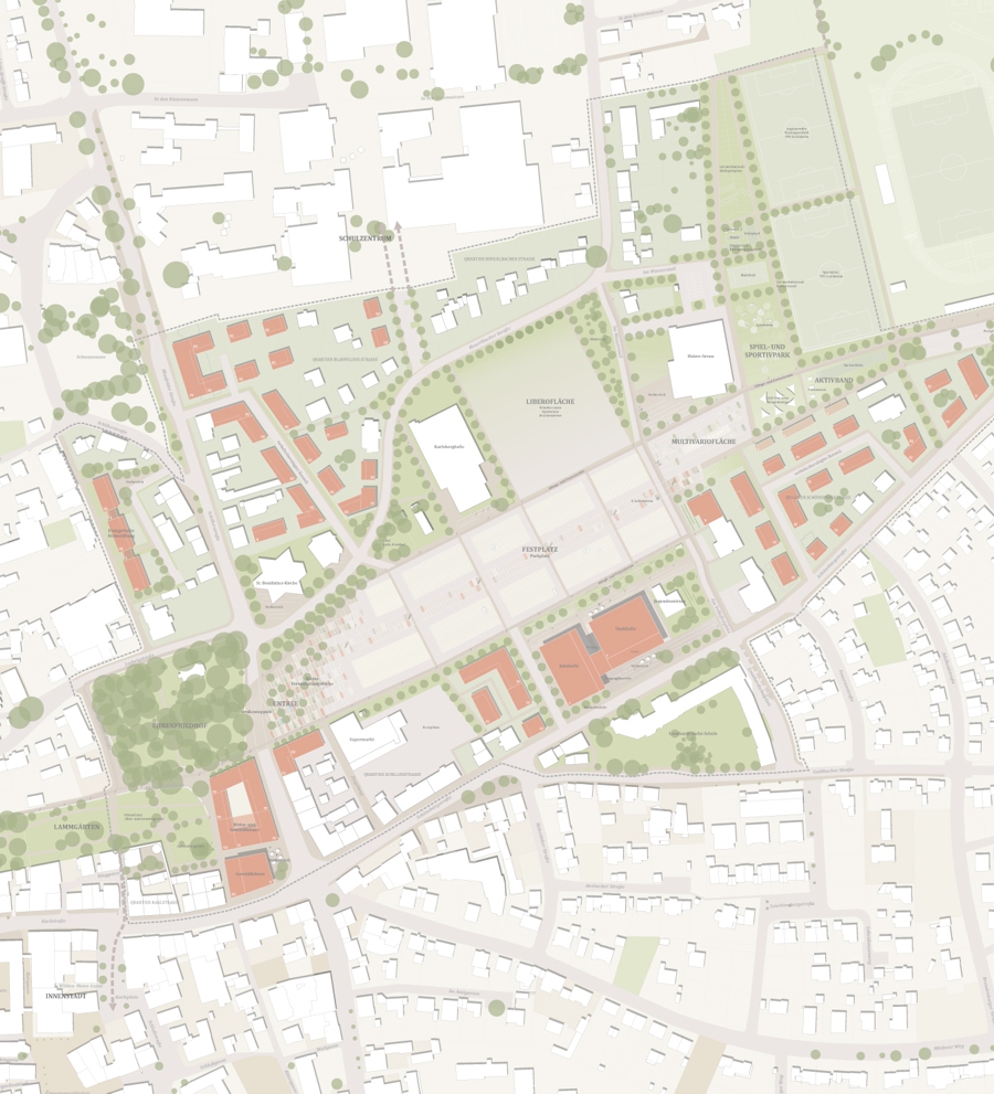 Das Ergebnis der Planung wird eine flexible und funktional gestaltete Festplatzfläche sein, die unterschiedliche Nutzungsarten ermöglicht. Durch eine differenzierte Raumaufteilung und variierende Gestaltungselemente entsteht eine attraktive und anpassungsfähige Veranstaltungsfläche. Diese soll nicht nur die Nutzung des Festplatzes intensivieren, sondern auch eine bessere Verzahnung mit der umgebenden Stadtstruktur und den dort bestehenden Wegen und Plätzen erzielen.