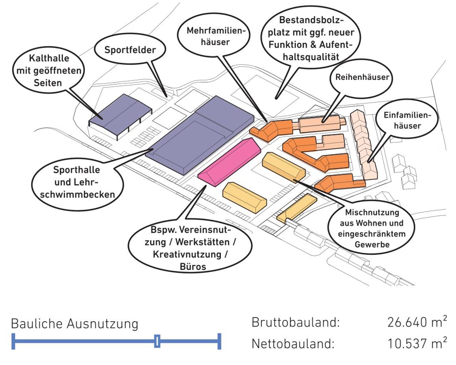 Das Ergebnis der Machbarkeitsstudie ist eine fundierte Einschätzung der am besten geeigneten Nachnutzungsoptionen. Sie bietet eine belastbare Grundlage für die nächsten Planungsschritte und Entscheidungsträger, ohne jedoch bereits konkrete Entwürfe oder Umsetzungspläne zu liefern. Die Studie stellt somit den ersten Schritt dar, um die weiteren Planungs- und Abstimmungsprozesse zu initiieren.