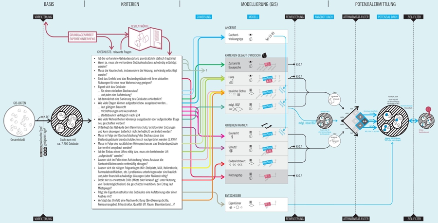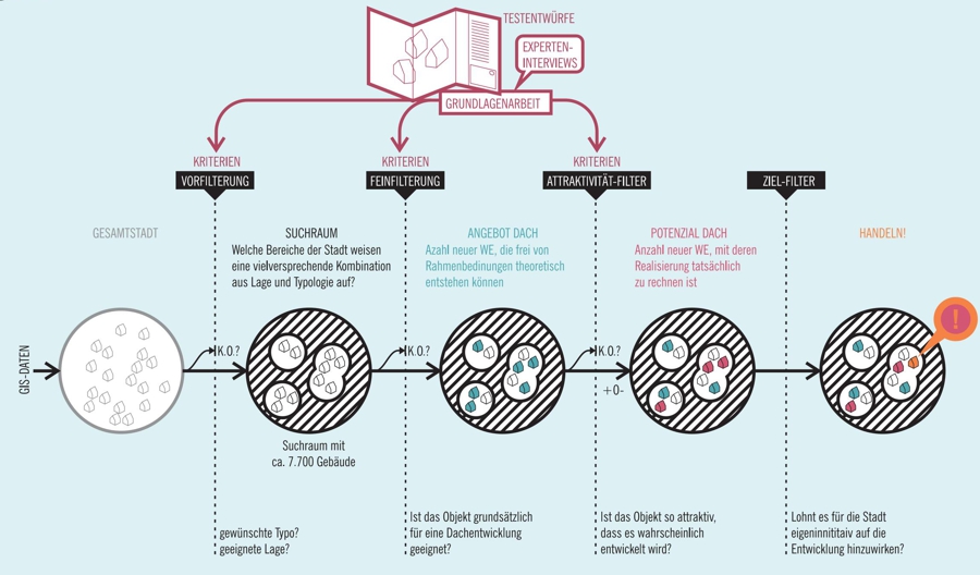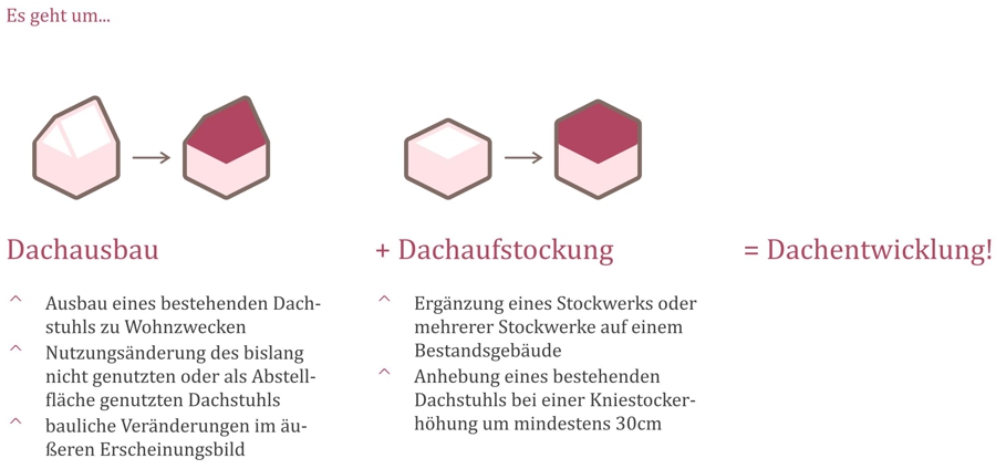 Die Vorgehensweise umfasst eine systematische Analyse der Dachflächen im Stadtgebiet. Dabei sollen untergenutzte Dachgeschosse untersucht und die Potenziale für einen Ausbau oder eine Aufstockung erfasst werden. Ein besonderer Fokus liegt auf der Schaffung von preiswertem, gefördertem Wohnraum und der Verdichtung des Siedlungskörpers, um das Leitbild der „Stadt der kurzen Wege“ zu fördern und die gewerbliche Infrastruktur zu erhalten. Zudem soll eine detaillierte Übersicht über die Chancen und Hemmnisse der Dachentwicklung erstellt werden, um eine fundierte Grundlage für zukünftige Entscheidungen zu bieten.