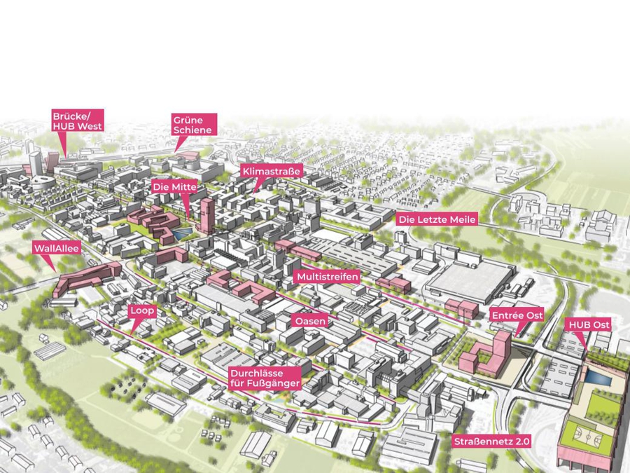 Das Ergebnis des Masterplans ist ein robustes städtebauliches Gerüst, das die Entwicklung des Quartiers in mehreren Etappen ermöglicht. Es werden innovative Lösungen für die Verkehrsführung, insbesondere die Integration von öffentlichen Verkehrsmitteln und Fußgängern, sowie nachhaltige Konzepte für den Klimaschutz und die Nutzung öffentlicher Freiräume umgesetzt. Der Masterplan bietet eine Grundlage für zukünftige Verfahren, um das Quartier zu einem funktionalen und lebendigen Stadtteil zu entwickeln.
