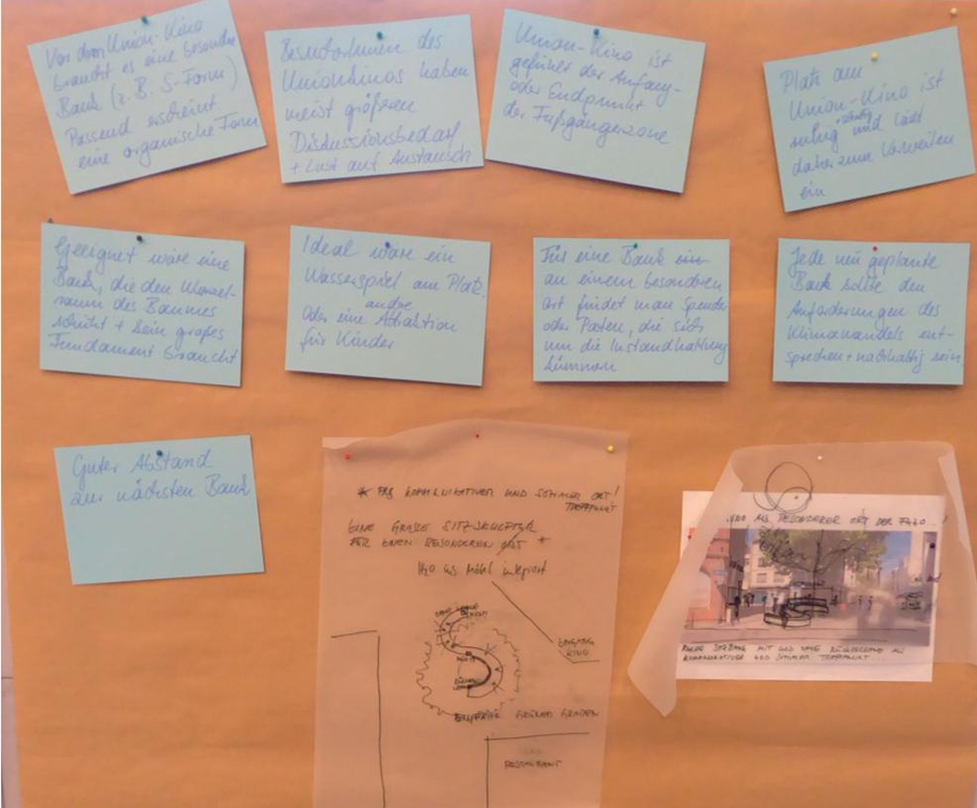 Die Ergebnisse zeigen eine klare Präferenz für bequeme, optisch ansprechende Bänke mit Holzauflagen. Zudem wurde der Bedarf an schattigen Sitzplätzen und barrierefreien Lösungen hervorgehoben. Besonders priorisiert wurde die Aufwertung des Platzes vor dem Union-Kino, da er eine zentrale Rolle in der Innenstadt spielt. Die Workshopteilnehmenden forderten, dass die Stadt die Ergebnisse berücksichtigt und weitere Beteiligungsformate für die Stadtgestaltung anbietet.