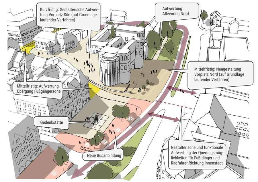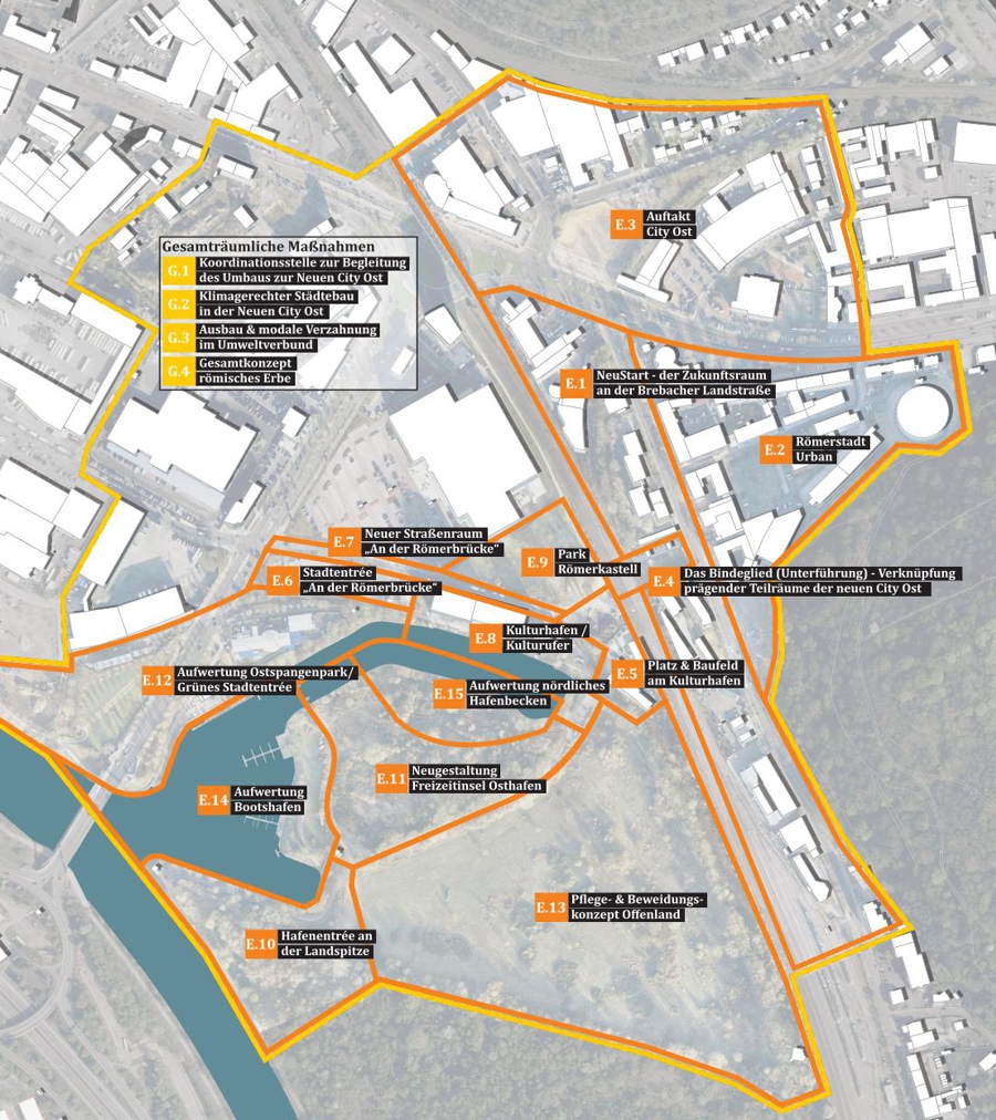 Das Ergebnis ist ein Katalog von 20 Maßnahmen, die die Trierer Innenstadt stärken sollen. Die Maßnahmen sind räumlich und thematisch vielfältig und wurden anhand einer umfassenden Priorisierung ausgewählt. Dabei flossen neben dem öffentlichen Stimmungsbild auch weitere entscheidende Faktoren in die Planung ein, um eine nachhaltige und zukunftsorientierte Entwicklung der Innenstadt zu gewährleisten.