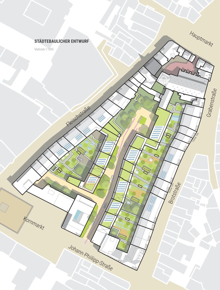 Das Projekt liefert detaillierte städtebauliche Handlungsempfehlungen für den Blockbereich zwischen Hauptmarkt, Brotstraße und Gangolfstraße. Diese dienen als Grundlage für künftige Bebauungspläne und Entwicklungsstrategien. Durch die Kombination aus Szenarien, Testentwürfen und Partizipation schafft das Konzept eine belastbare Basis für eine zukunftsfähige und lebenswerte Innenstadtentwicklung.