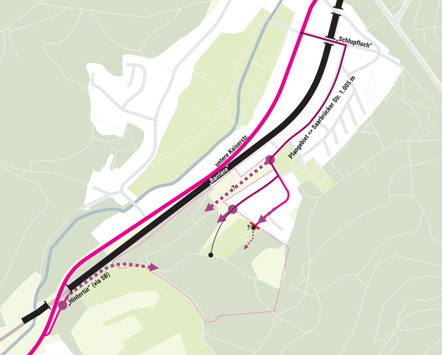 Ziel ist eine sozial durchmischte Bewohnerschaft, wobei Nachhaltigkeit ein zentrales Element des Entwurfs darstellen soll. Aspekte wie Ökologie, Klimaschutz und umweltfreundliche Mobilität müssen mitgedacht werden. Die Topografie des Gebiets stellt eine Herausforderung für die Erschließung dar, da die Anbindung an die Landstraße und die Nähe zur Bahntrasse die Planung erschweren. Die Erschließung wird voraussichtlich über die Saarbrücker Gemarkung erfolgen, was eine interkommunale Zusammenarbeit bei der Flächenentwicklung erfordert. Das Strukturkonzept soll eine erste Vorstellung von der Bebauung vermitteln und den Eigentümern Entwicklungsmöglichkeiten aufzeigen.