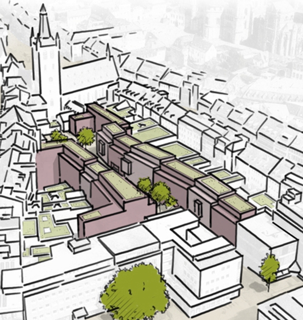 Leistungen: Entwicklungskonzept für einen innerstädtischen Blockbereich „Projektlupe 4“