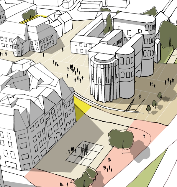 Das Ergebnis des Entwurfs sieht eine behutsame Neugestaltung vor, bei der die „Blöcke“ der vier wichtigen Baufelder – Tersteegen-Haus, Hafthaus, Amtsgericht und das neu zu bebauende Gelände – um den historischen Hof des Hafthauses gruppiert werden. Diese Blöcke werden durch Fassaden und Grünflächen miteinander verbunden, wobei das verschlossene Innere des Plangebiets nun durch diese neue Offenheit an Lebensqualität und Urbanität gewinnt.